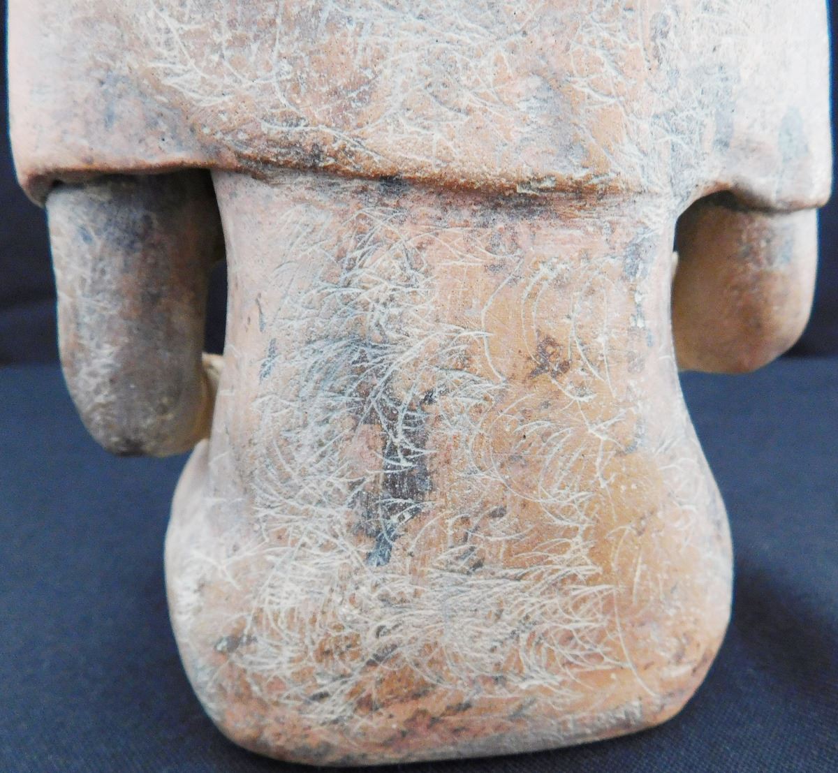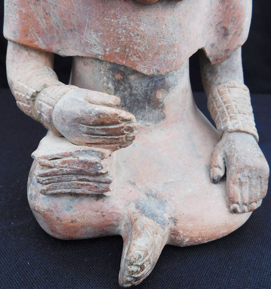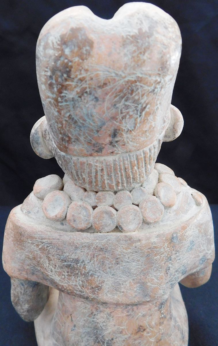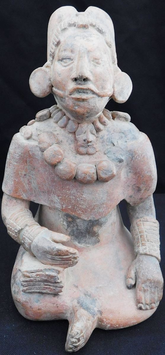 Figure of Mayan Priest, circa 1000 years old. It is made of clay and paint and measures 7 x 4 x 4 inches. Mayan, Jaina Island. Condition: There are a couple of necklace beads missing, see images. Shipping: $24.00