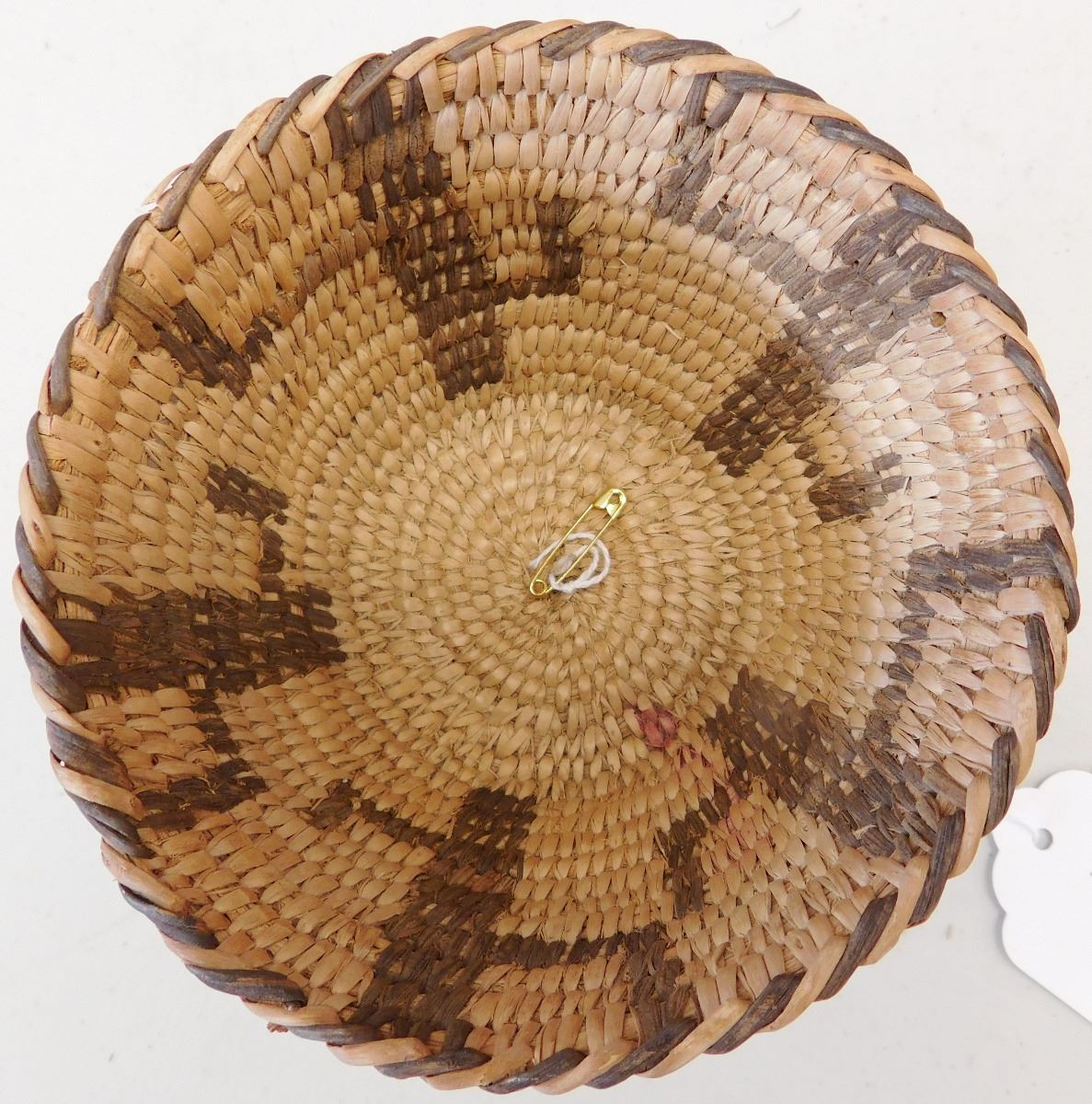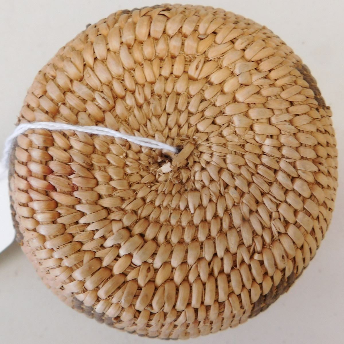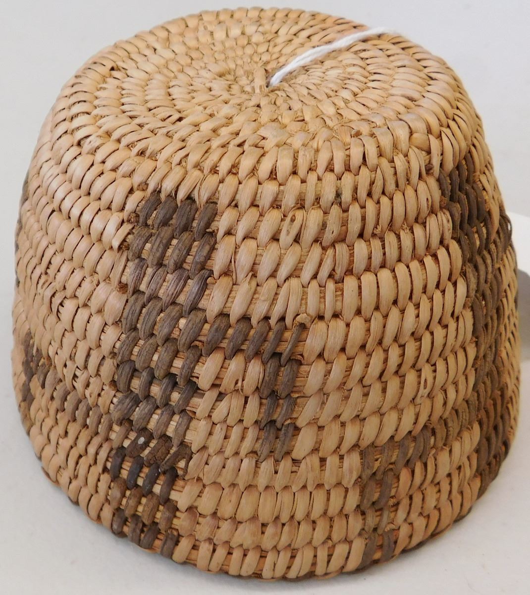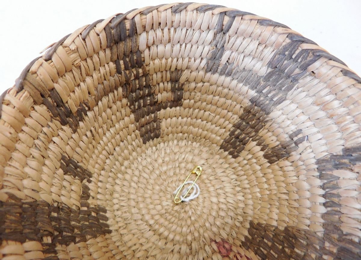 Figured Pima Basket, circa 1940s and measuring 3 x 4 .5 inches and has a cactus design. Nice stitching in the basket made from willow and devil's claw. Condition: Very Good condition, see images. Shipping: $15.50.