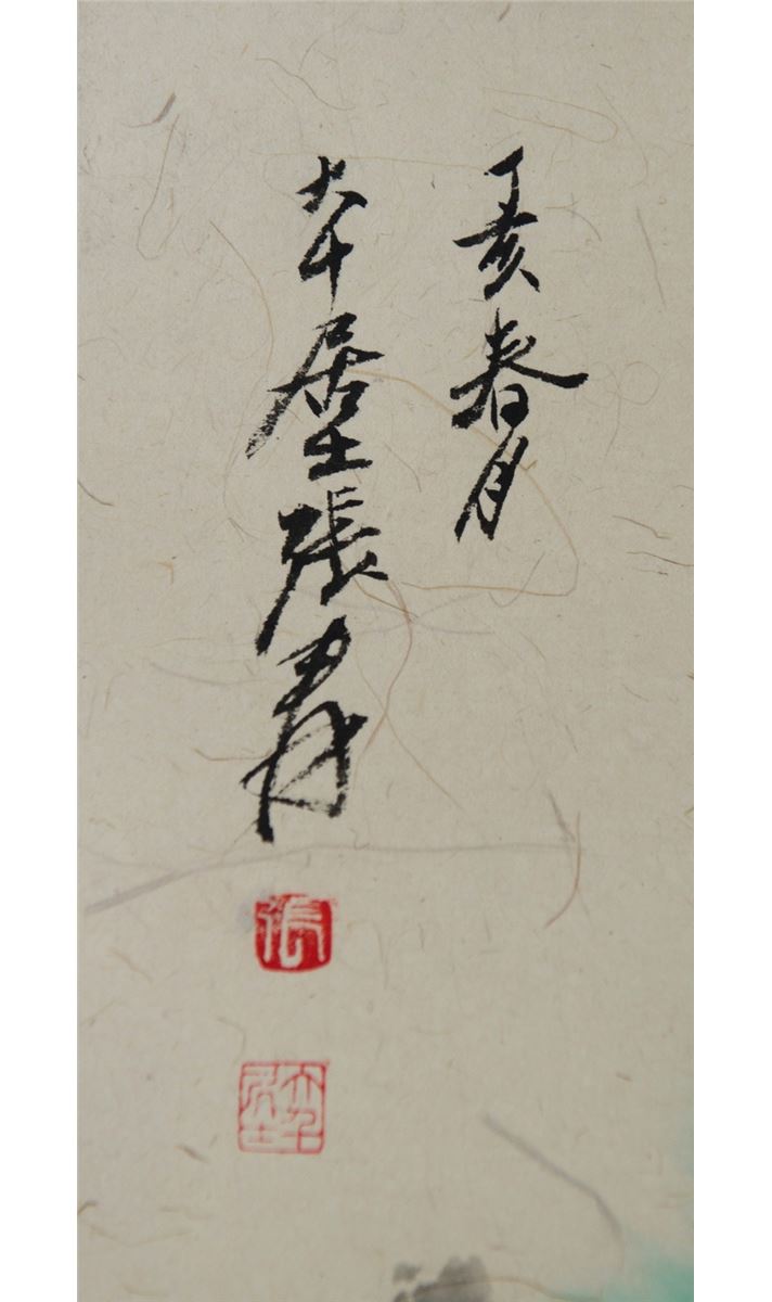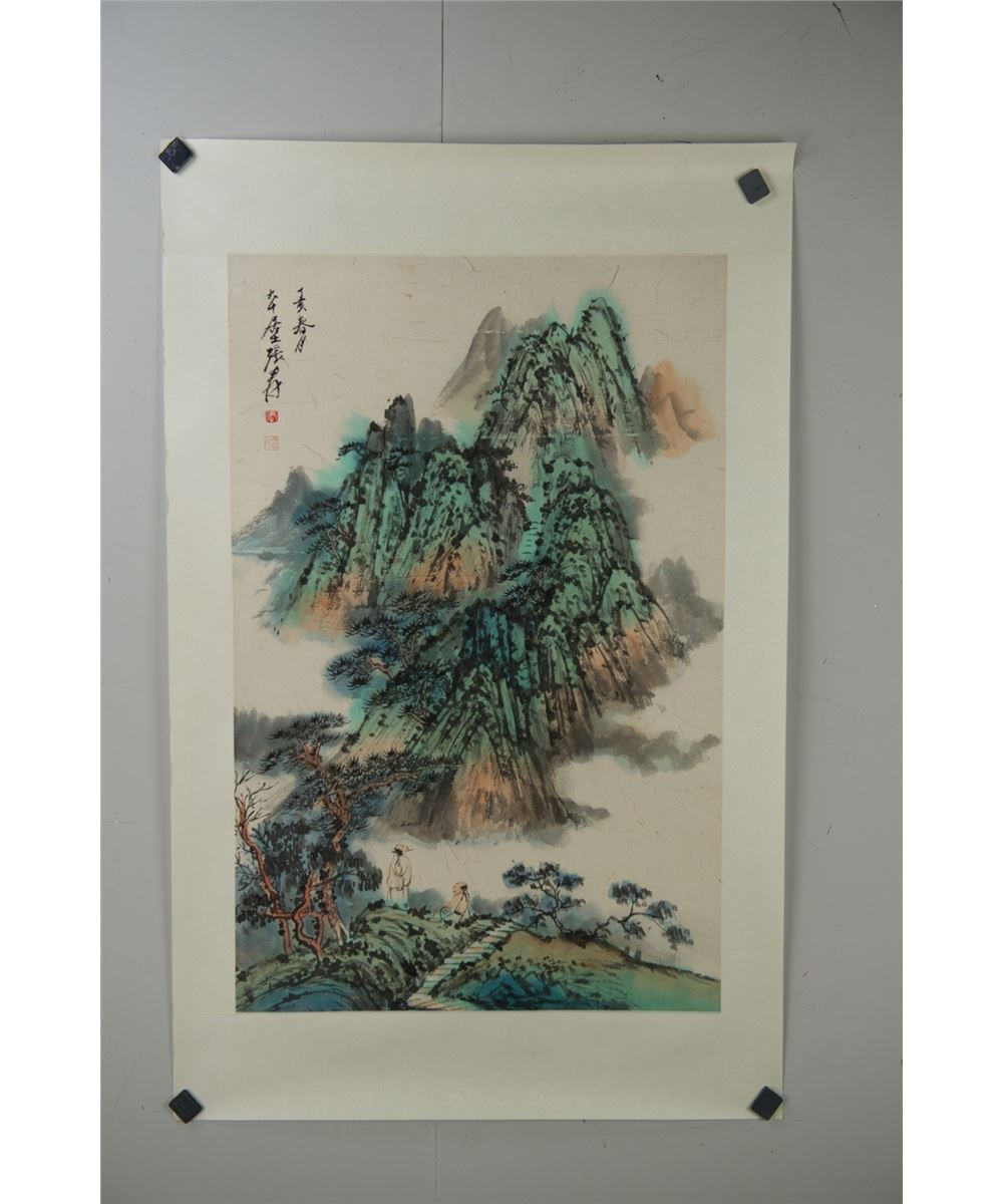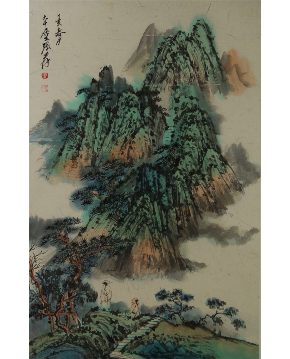 Figures and landscape, Chinese ink and watercolour on paper, signed Zhang Daqian with red seals. 69 cm x 44 cm. Provenance: T. Ng Collection Toronto.