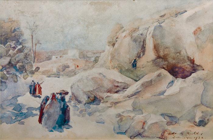 Figures in Jerusalem, signed, dated 1932 and inscribed Jerusalem (lower right)