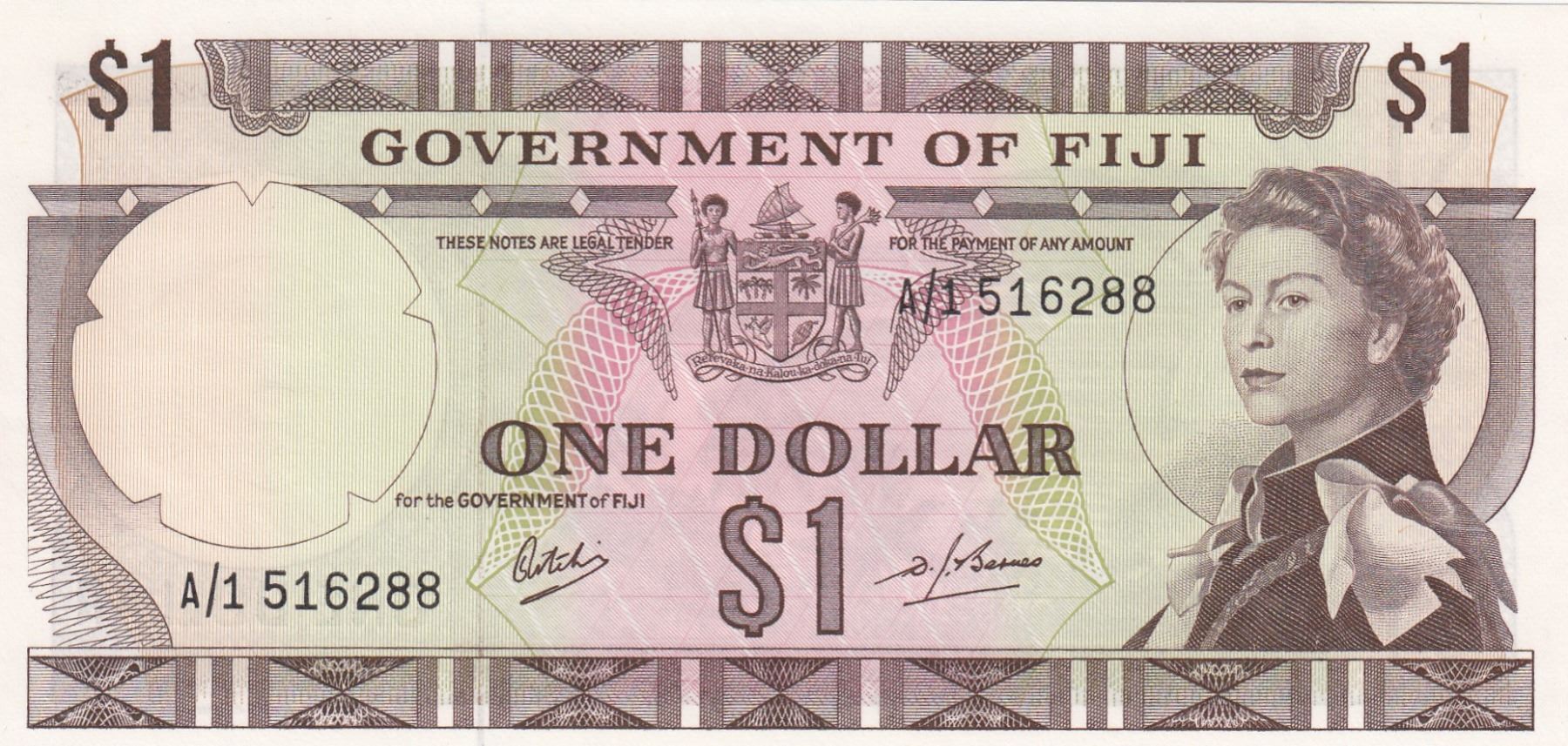 Fiji, 1 Dollar, 1969, UNC, p59abr/Queen Elizabeth II portrait, serial number: A/1 516288