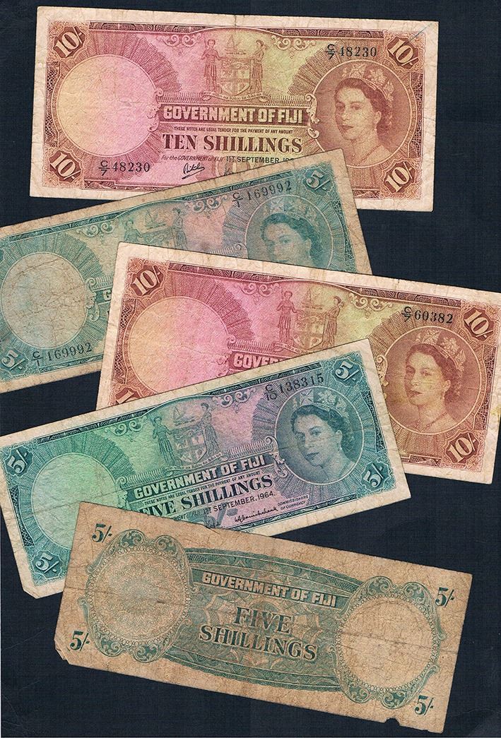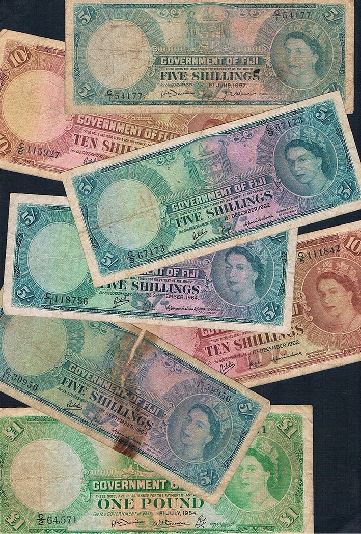 Fiji, QEII, Five Shillings - One Pound, 1954-64 (P.51a (3), c , d (3); 52c , d (3), 53a)