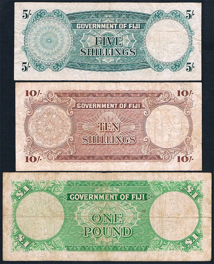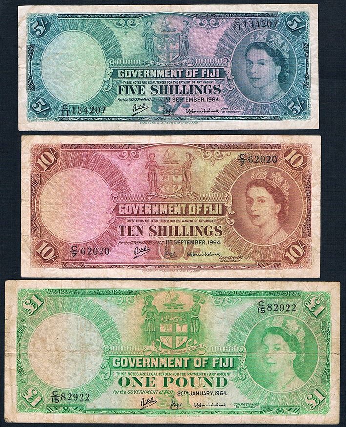Fiji, QEII, Five Shillings - One Pound, 1964 (P.51d, 52d, 53f), Fair -aVG