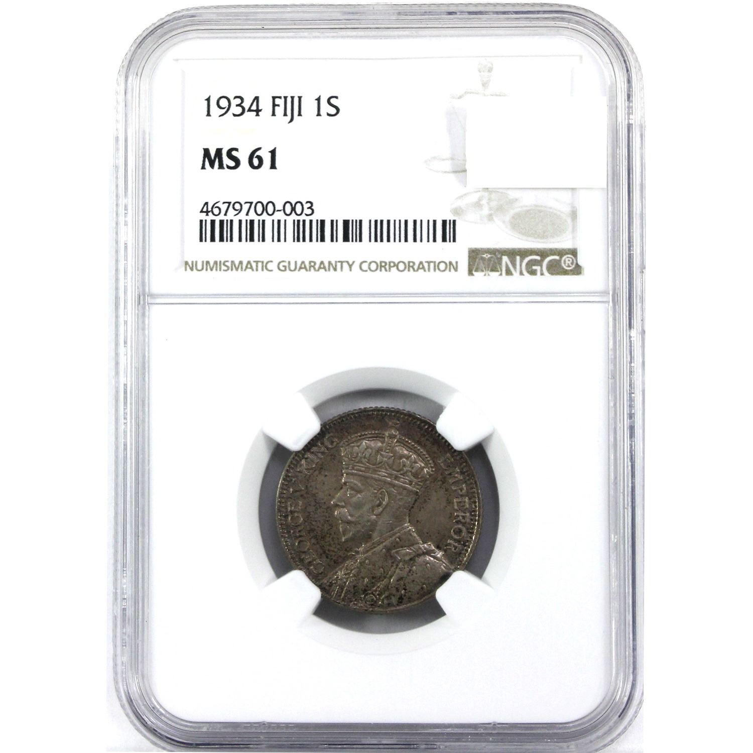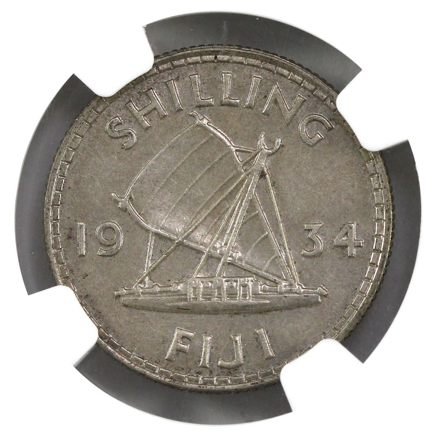 Fiji Silver 1934 Shilling NGC MS61. Handsome, Soft Lavender Patina. Coin is .500 Fine and Contains 0.0909oz Pure