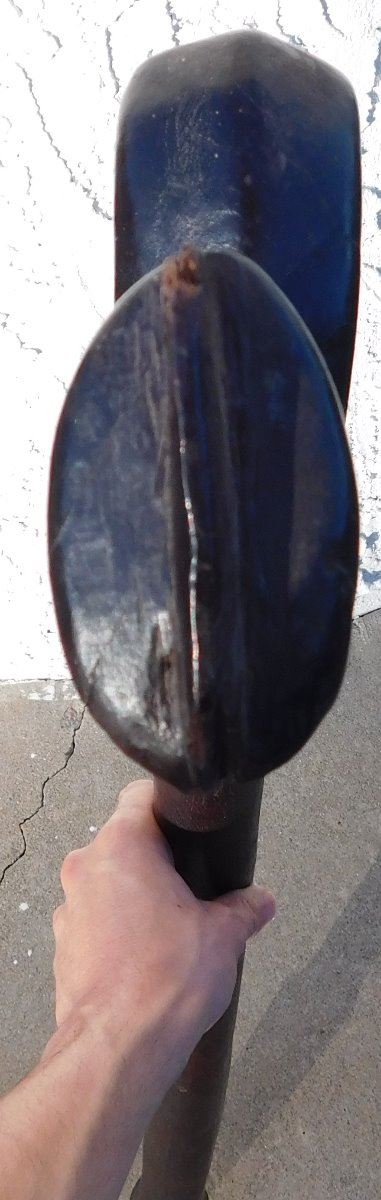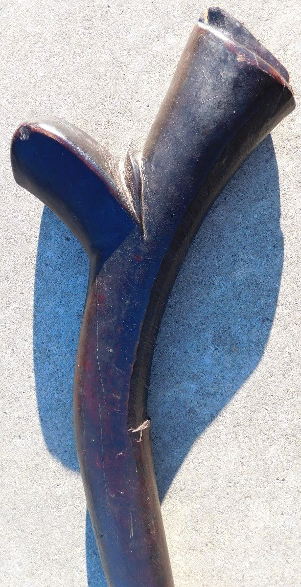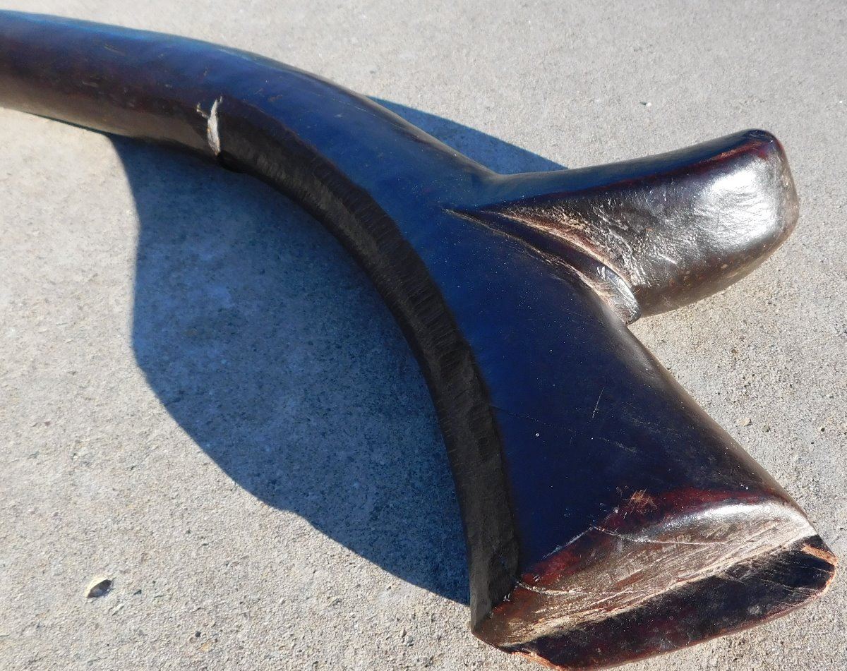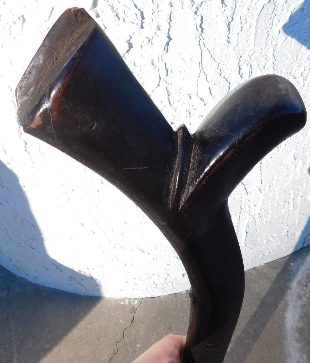 Fijian War Club w/Helm COA, c. 1870s or earlier. Made of hardwood, the item measures 41" x 8.5" x 2.5". Fiji. Note the phallic base and the rifle-stock appearance of the top of club. Condition: Very good, minor nicks and some scratches, see images. Shipping: $60.00 USA estimate only, due to size and weight. Buyer pays all shipping fees.