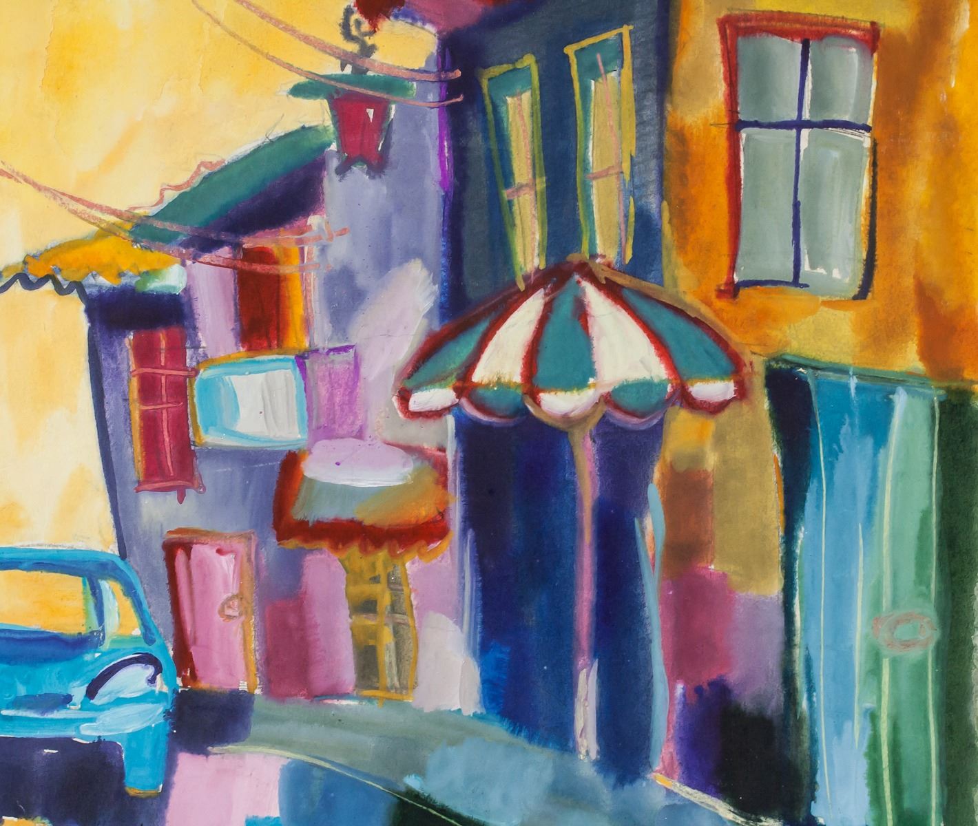 Mixed media on paper. Featuring a landscape scene of a row of shops and houses. Signed Fikret Moualla on the lower left corner. On verso, featuring a sketch of a clothesline hanging from building to building across a lightly sketched alley. Attributed to Fikret Moualla (1904-1967, Turkish). 46 x 34.5 cm (18 x 13.6 inches). PROVENANCE: Southern Ontario estate