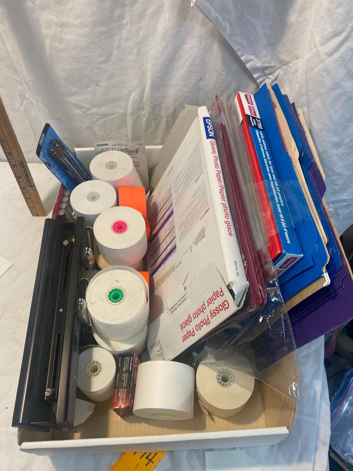 File folders, calculator paper, hole punches, photo paper abs address labels