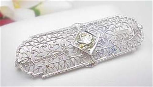 Filgree brooch with diamond approx .75Ct 10kt white gold