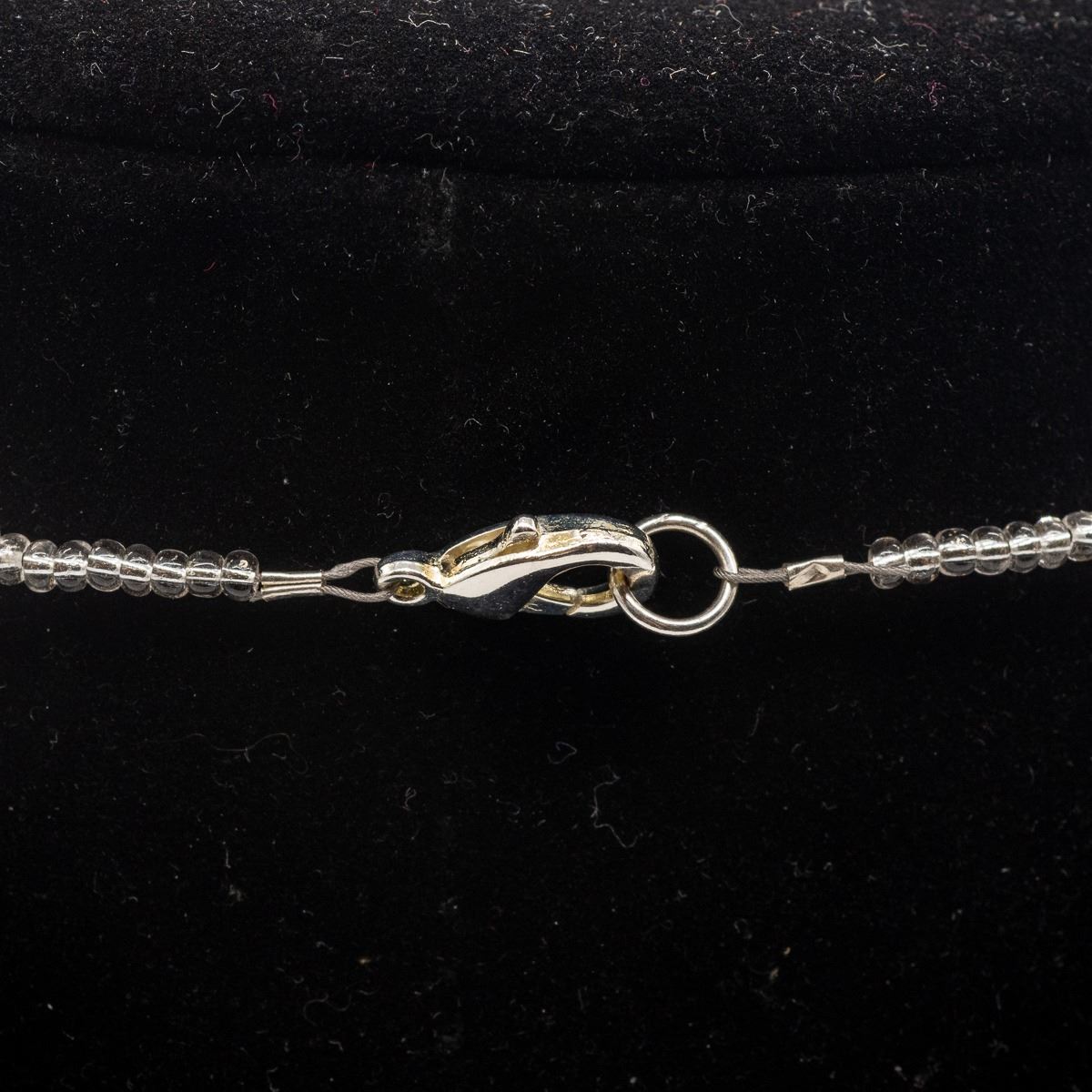 Quail Ridge Studios Filigree Silver Tone Cross Pendant Choker Necklace with Earrings by Larry McLellan, a large filigree silver-tone cross is the focal with a 12mm aurora borealis rhinestone, graduated vintage rock crystal faceted beads with foil-lined crystal seed beads as spacers, the choker measures 16'', overall with cross 24'', sterling silver lobster clasp is used as a closure, matching earrings with a 10mm AB rhinestones on silver French wires, The magic of the Desert Southwest is timeless in its display of open landscapes, sunrise and sunset colors with infinite possibilities of artistic expression. The design studio of Quail Ridge was founded on these possibilities, forging an endless variety of earthen gems to their metallic counterparts. The artist, Larry McLellan, designs jewelry contemporary in style, while maintaining elements of native designs.