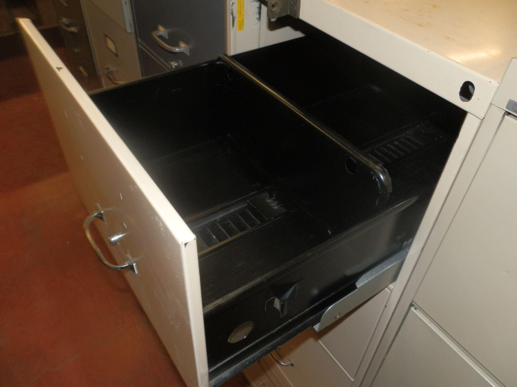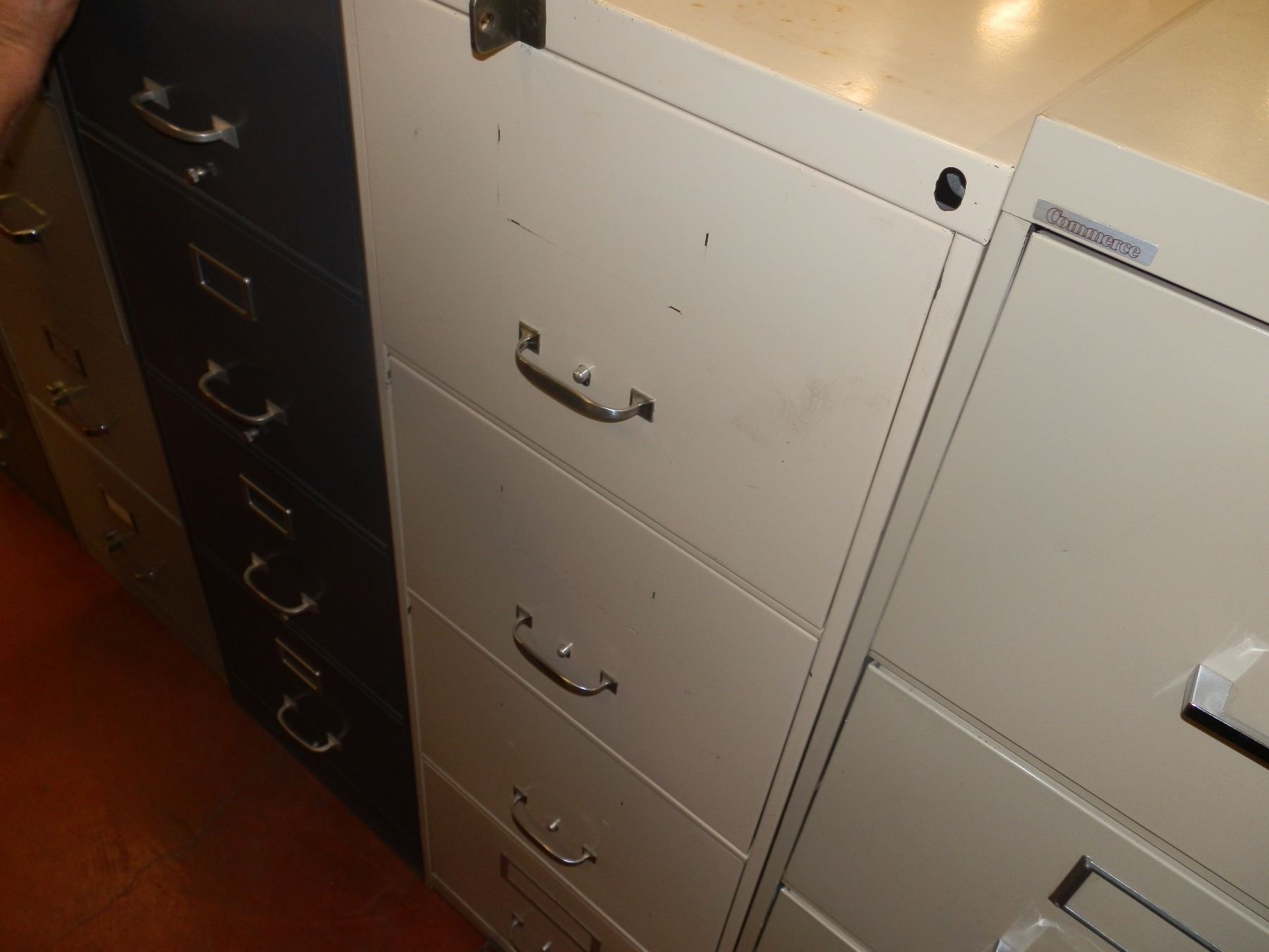 4 drawer legal metal filing cabinet 18"Wx26-28" D x 51-53"H ideal for garage storage.. tanned in color used