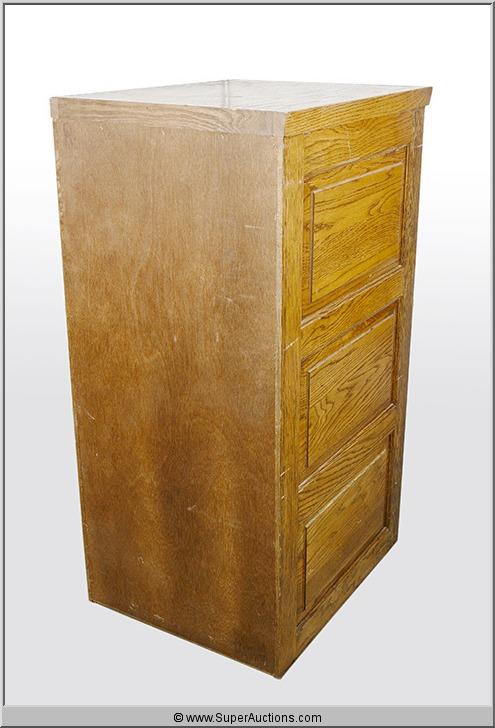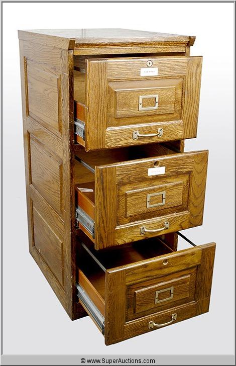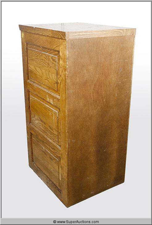 Filing Cabinet, 3 Drawer, Oak. Dimensions L24 1/2" x W19 1/2" x H43" (Oversized Item)