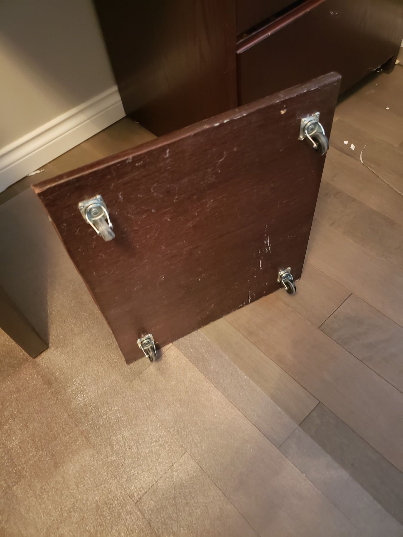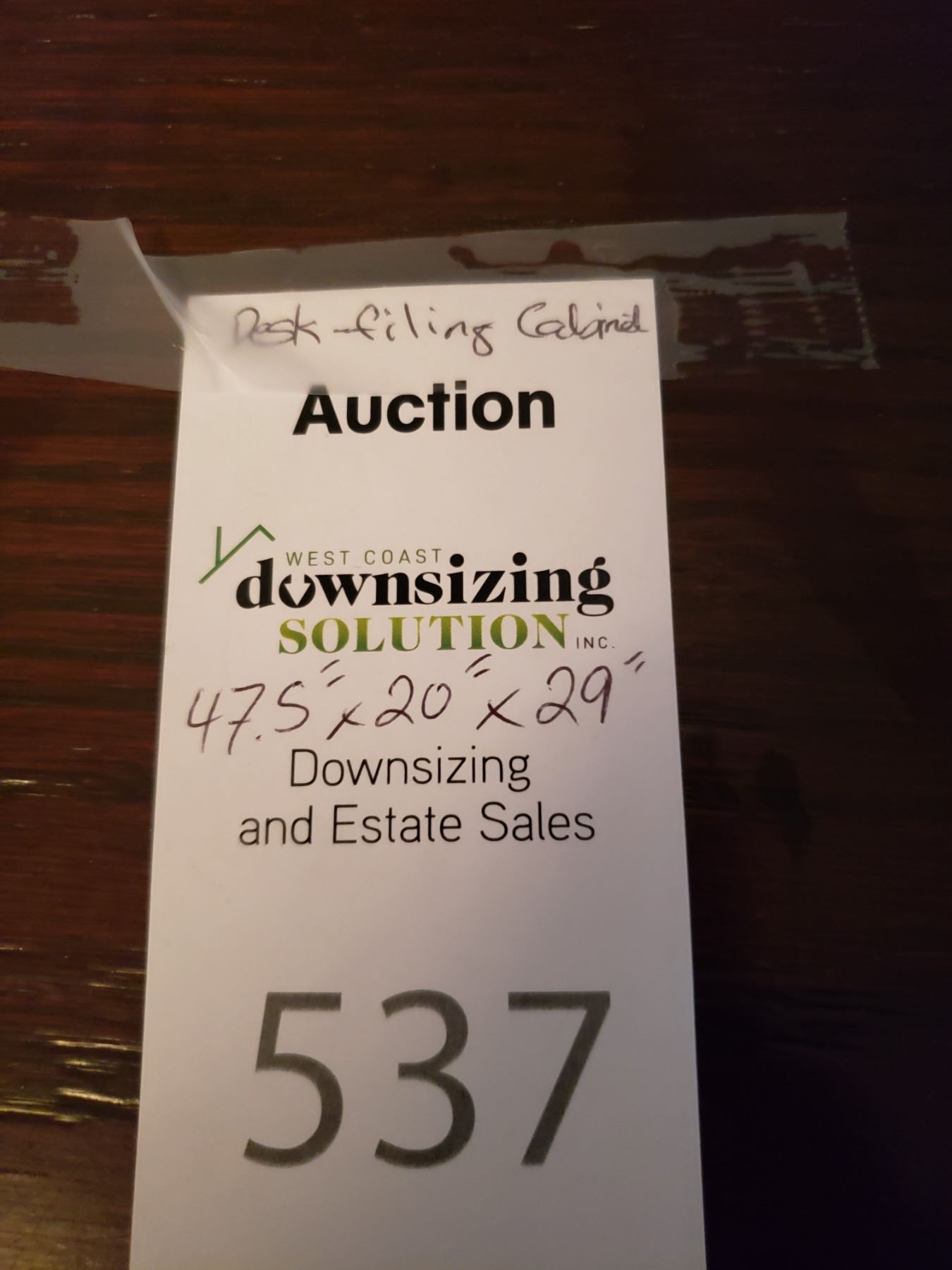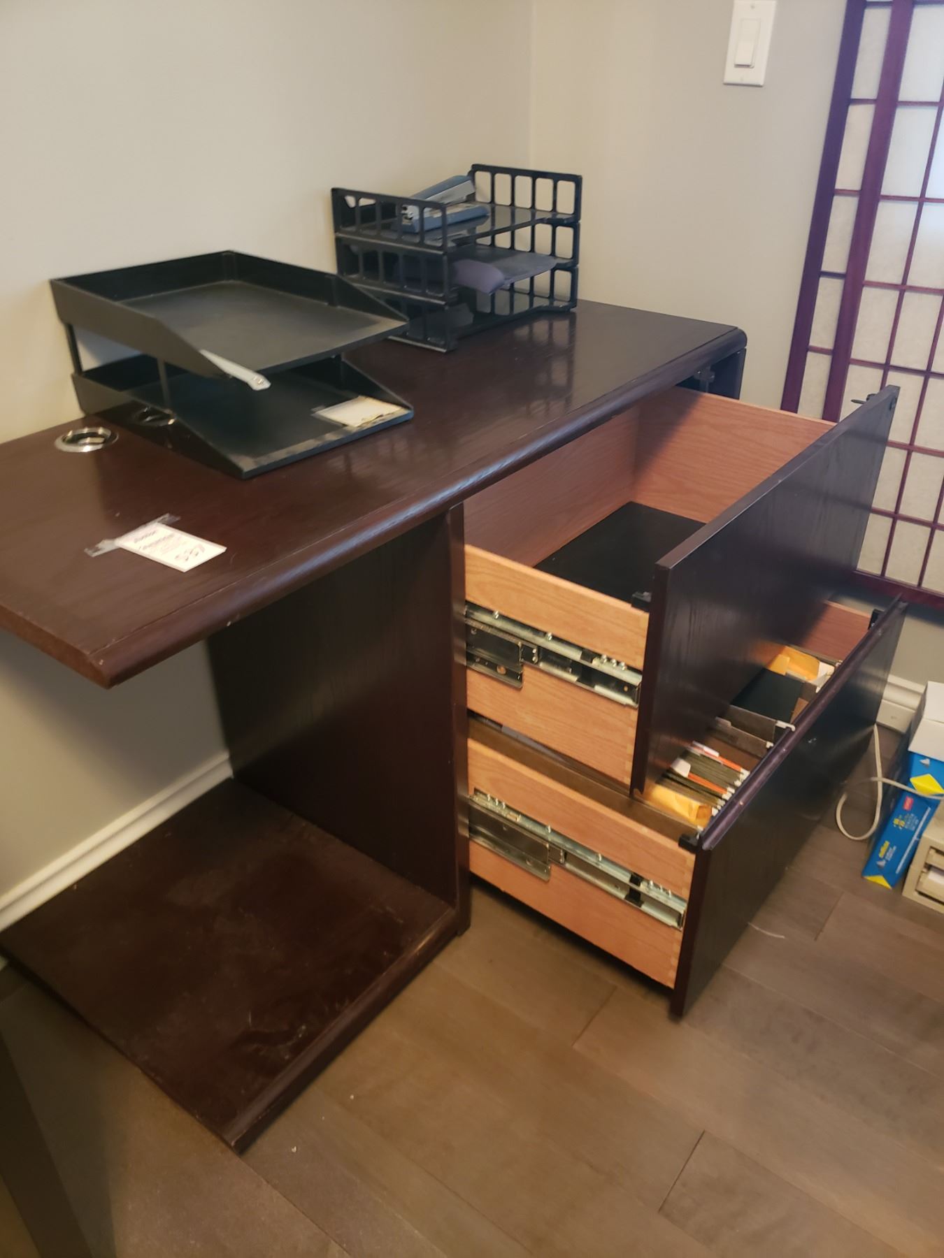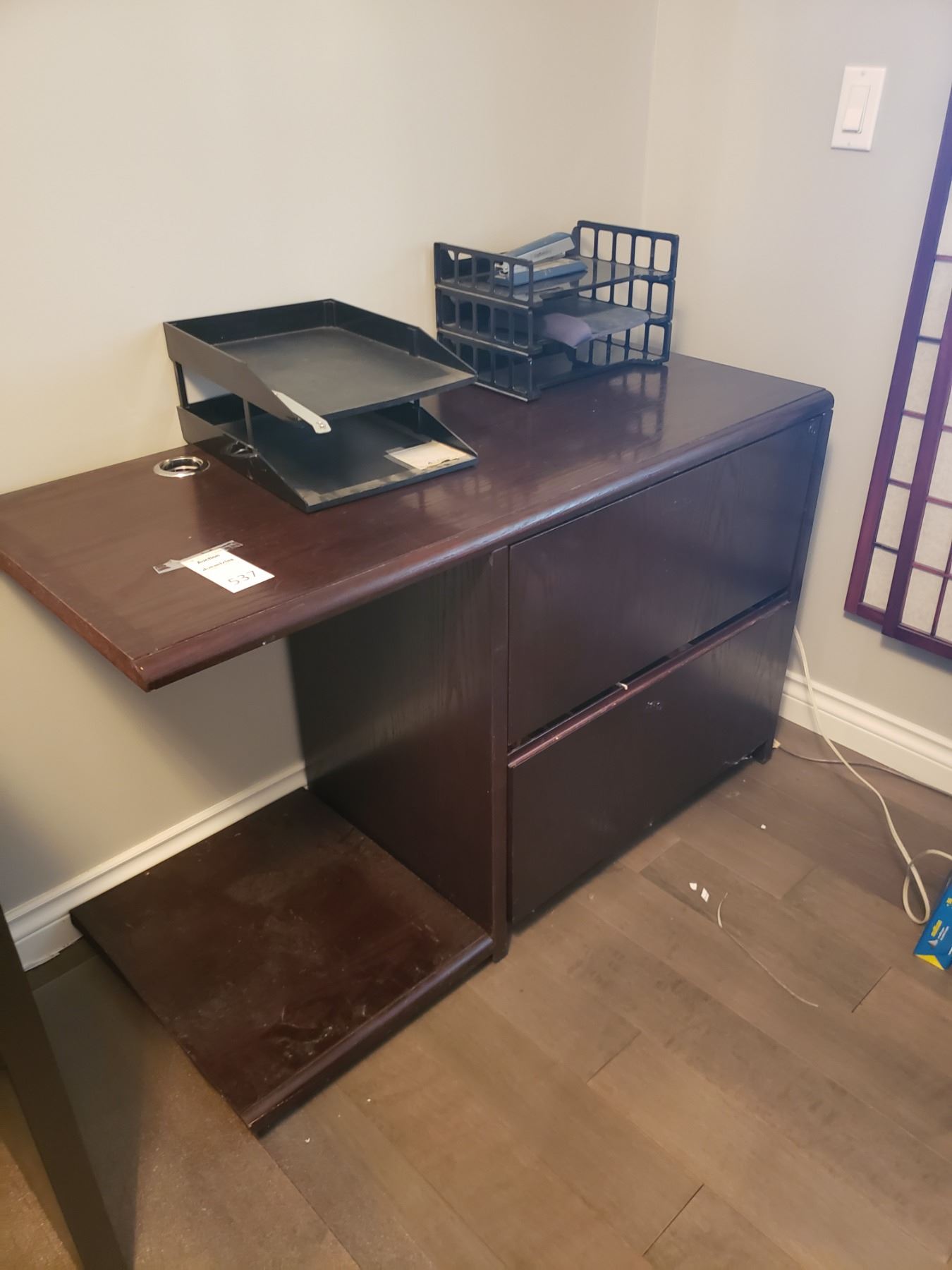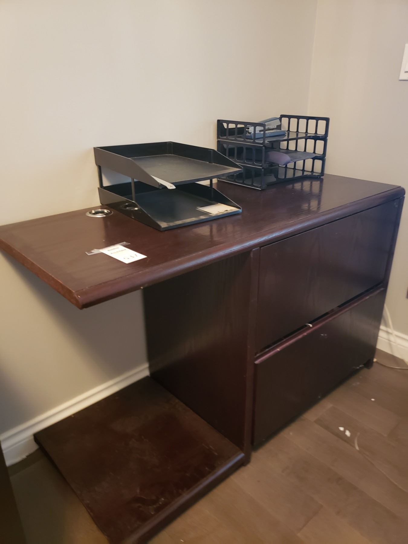 Filing cabinet, 48x20x29 with 2 drawers and office shelves. Very heavy, bring help to move. Pickup in category C between 11am and 12pm.
