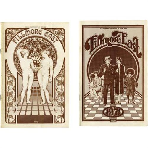 <B>Ten Years After/Santana Fillmore East Program Group (Bill Graham, 1970-71).</B></I> Two vintage Fillmore programs: Ten Years After, Zephyr, Doug Kershaw, and Joshua Light Show, from February 26 - 28, 1970. In VG condition, with minor stains and writing on back cover. Plus, Santana, Rahsaan Roland Kirk & His Vibration Society, Howdy Doody Revival (featuring Buffalo Bob Smith), and Joe's Lights, from April 1 - 4, 1971. In VG+ condition, with light staining on back cover<BR><BR><b>Shipping:</b> Flat Material, Small (<a target="_blank" href="http://www.heritageauctions.com/common/shipping.php">view shipping information</a>)