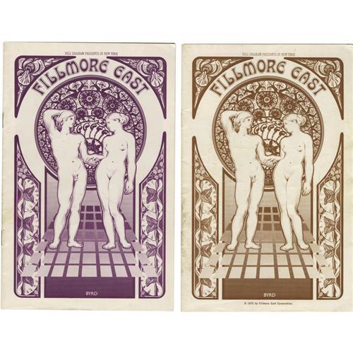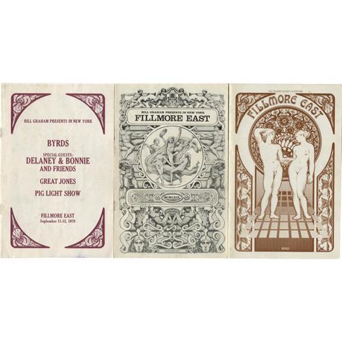 <B>Fillmore East Program Books.</B></I> Set of five vintage programs for shows at Bill Graham's fabled rock Palace in the East Village; included is one each for October 10-11 performances by Vanilla Fudge; January 16-17, 1970 performances by Santana and the James Gang; June 2-7, 1970 performances by Crosby, Stills, Nash & Young; September 11-12 performances by the Byrds, and December 11-12, 1970 performances by Canned Heat and the Allman Brothers Band. In Fine to Very Fine condition with mild wear, soiling, and some spine stress.<BR><BR><b>Shipping:</b> Flat Material, Small (<a target="_blank" href="http://www.heritageauctions.com/common/shipping.php">view shipping information</a>) <BR><BR><B>Important notice: