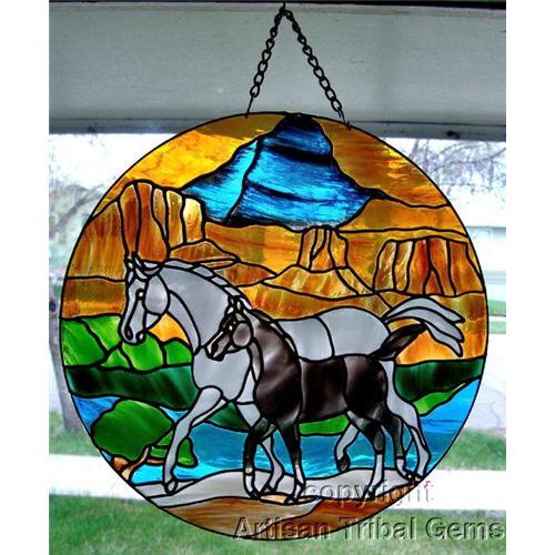 <BR>Our stained glass painting is presented on an 18" acrylic panel, signed and dated complete with heavy chain for installation..... An extraordinary display of magnificent color will instantly become the focal point of your chosen location.(d1476)