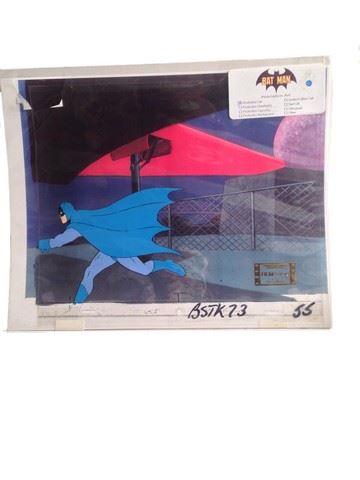 "Batman" Animation Cel (featuring "Batman" running to the Batplane / includes original hand drawn character sketch / 1974 / Filmation Studios / 12" x 9") (NOT Matted)