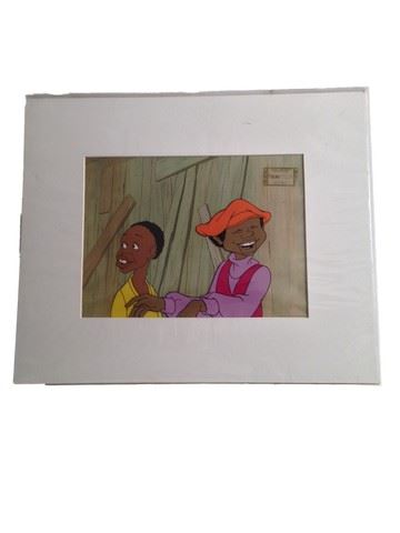 "Fat Albert" Animation Cel (featuring "" Rudy and Bucky") standing in front of a fence, original hand painted production cel.(18x15)