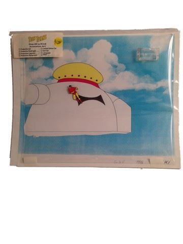 "Flash" Animation Cel (featuring the "Kid Flash" battling a giant robot / includes original hand drawn character sketch / 1967 / Filmation Studios / 12" x 9") (NOT Matted)