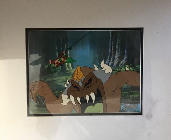 Star Wars "Ewoks" Animation Cel (featuring "Wicket" battling a large forest creature / 1985 / Lucasfilm Ltd. / 12" x 9") (some ink from cel has bleed and stuck to plastic)