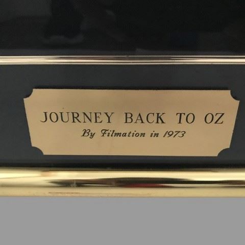 These framed items contain a sticker from Legends of Art and a plaque with the film title and production company name.