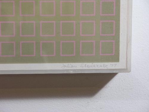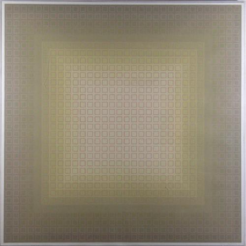 Stanczak, Julian (Cleveland School 1928 - ) Silkscreen, serigraph, in shadow box, /s/ l.r. in pencil "Julian Stanczak '77", 32 1/2" by 32 1/2".