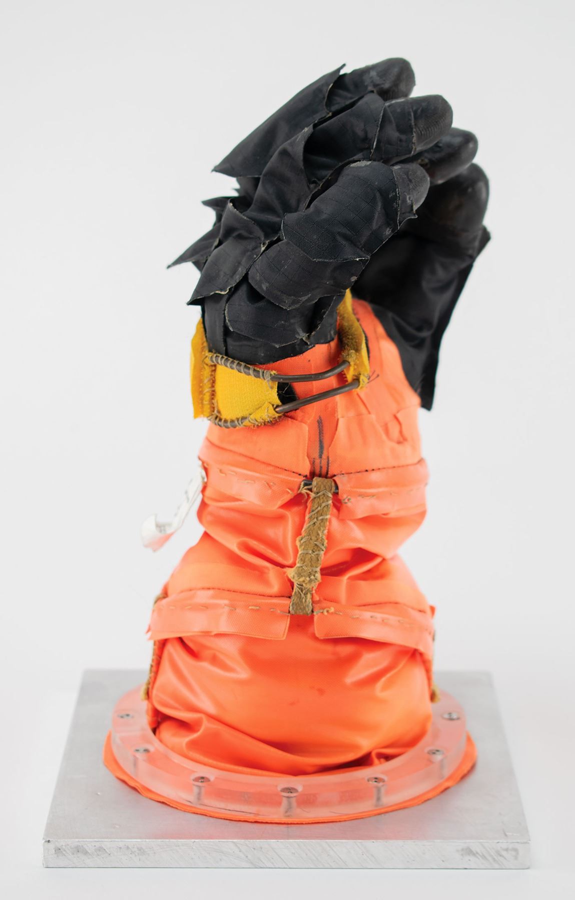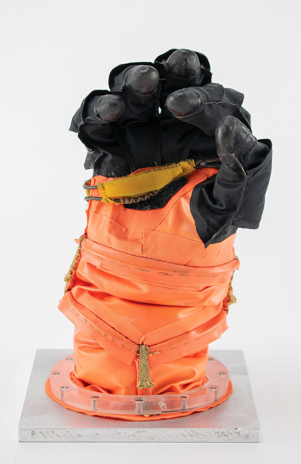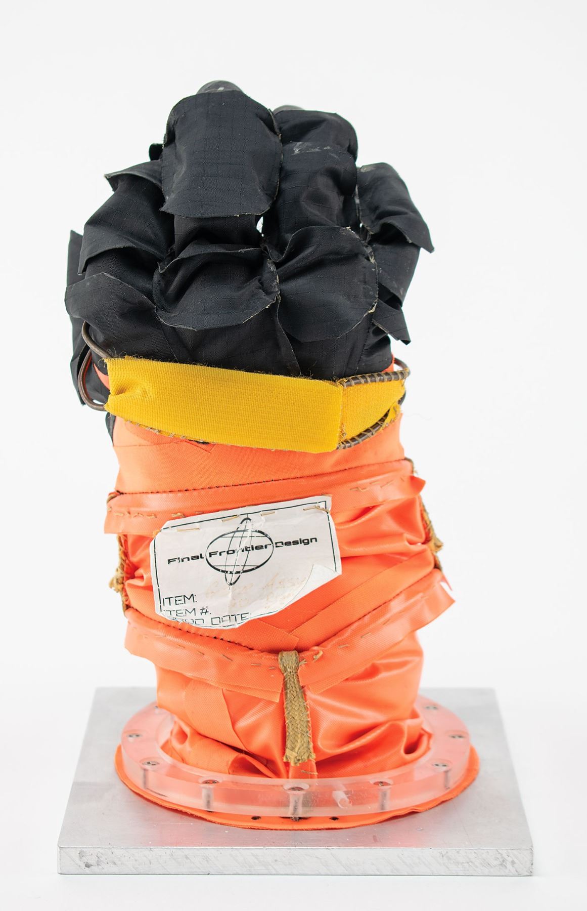 With this design prototype, FFD approved the glove design with gimbal ring wrist joint and original flat patterns for single restraint bladder technology; it was designed for display only, and the Thermal Micrometeoroid Garment (TMG) is not included. Final Frontier Design was founded after Ted Southern and Nikolay Moiseev took home a $100,000 second place prize in NASA's 2009 Astronaut Glove Challenge, with a pressurized glove design that outperformed NASA's Phase VI gloves in a variety of tests. Their company has since gone on to win several NASA contracts for various space suit and life support system elements, and has developed low-cost EVA (Extravehicular Activity) and LEA (Launch, Entry, & Abort) space suits. Moiseev one day plans to put one of his FFD suits on Mars.