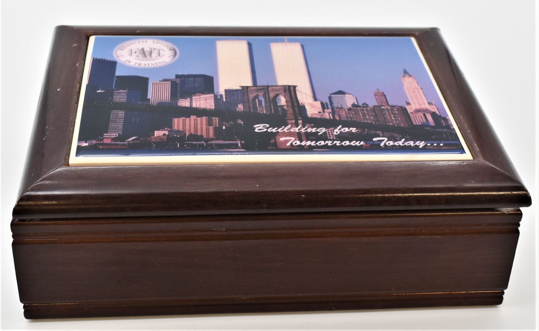 Financial Advisor in Training Jewelry or Trinket Box, ''Building Tomorrow Today...'', measures 3'' x 9'' x 6.5'', nice heavy wood, velvet lined