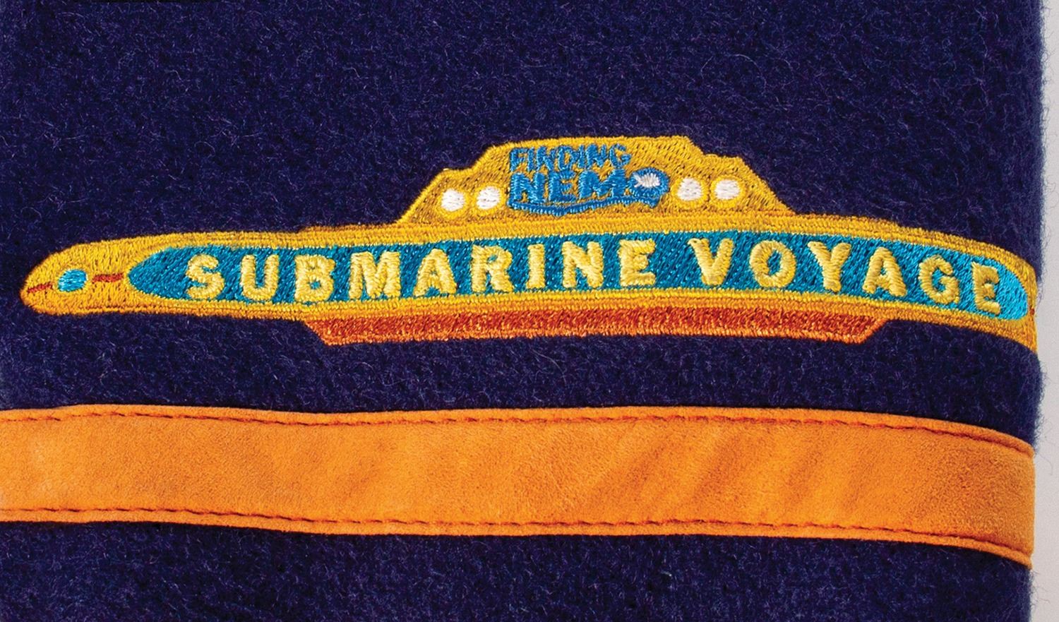(Disneyland, 2000s) A cast member jacket from the Finding Nemo Submarine Voyage attraction at Disneyland. This jacket still has its original Disney tags and features a Finding Nemo Submarine Voyage patch on the left sleeve. The jacket is a women's size extra small and is in very good condition with minor wear from use, including some minor discoloration on the cuffs.