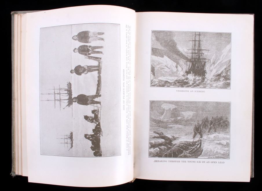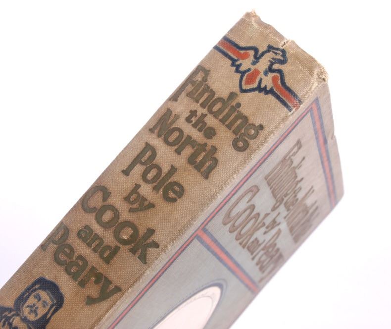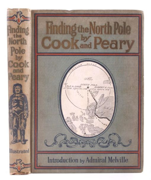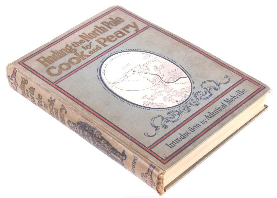 This is a first edition of "Finding the North Pole" edited by Charles Morris and published in 1909. The book is a historical account of the discovery of the North Pole by Frederick Cook on April 21, 1908 and Robert Peary on April 6, 1909. The hardbound book has a wonderfully decorated and gilted cover. Additionally, the book has numerous illustrations of the journey. Overall, the book shows good condition. The book measures 9 1/4" tall, 6 7/8" wide, and 1 1/8" thick.
