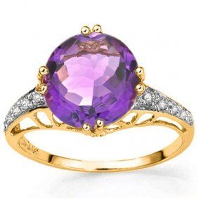 This ring features the Round 10mm Amethyst and the 10 pcs of the diamond set in 10K gold