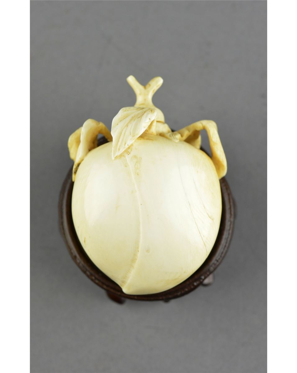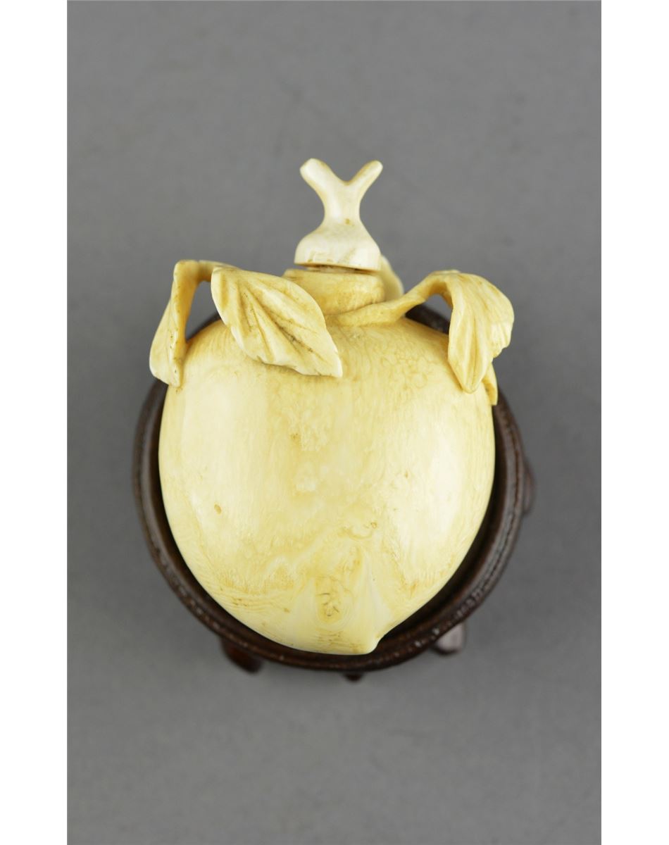 Fine Chinese ivory carved snuff bottle; in form of an auspicious peach, 17th/18th Century ; H: 7 cm, 69 grams