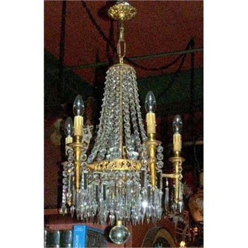 </font></strong>A beautiful French Chandelier, cut lead crystal beads chains and quality crystal pendants, featuring 6 arms and two additional lights inside, a fantastic antique crystal ball , antique chain and canopy and Bulbs are included too.