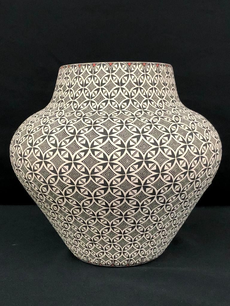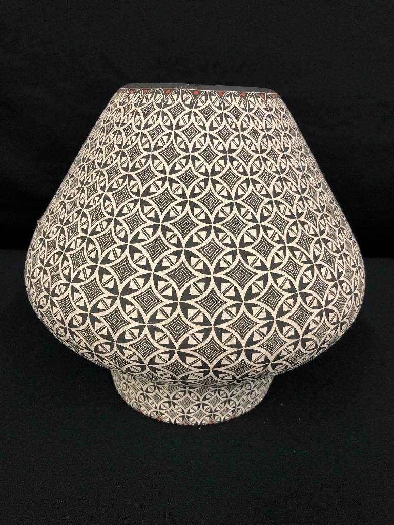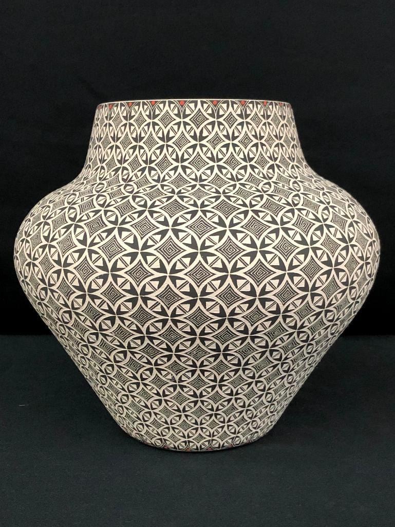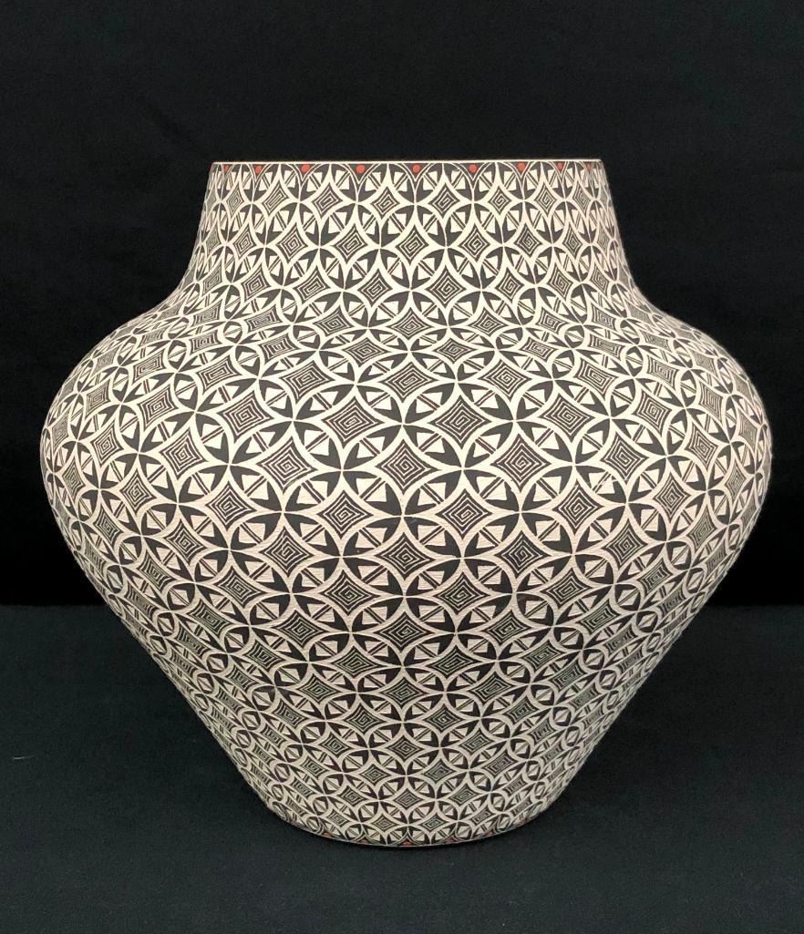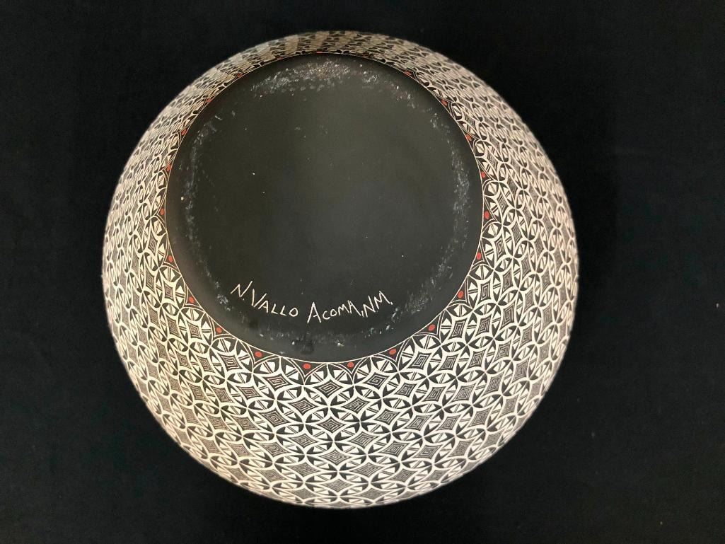 Offered for sale in this lot is a fine, handmade Acoma pot by created by Nathaniel Vallo. This is a very intricate pot with detailed etching and it would make a great addition to your pottery collection. MAKER: Nathaniel Vallo (1965 - ), Acoma, NM. APPROX AGE: Fairly modern. SIZE: 9 inches wide x 8-1/4 inches deep. CONDITION: Good, minimal wear expected. Please look closely at the pictures as they are an important part of our description and are hereby incorporated into the description, specifically with regards to condition. SHIPPING: There will be a $10 handling / packaging fee for shipping this lot. The actual cost of postage will be added on top of that. BUY IT NOW: If you would like to buy this item now, without waiting for the auction day to bid on it, we do offer this option (which is available up to 48 hours before the actual auction starts). The “Buy it Now†price is the high estimate of this lot (plus applicable fees and the Buyer's premium is discounted to 10% when using the Buy it Now option). If you would like to exercise this option, you must contact us by email (or phone as long as you talk to someone live). Reference this lot number and your intention to "Buy it Now."