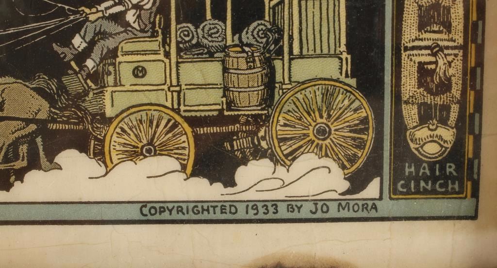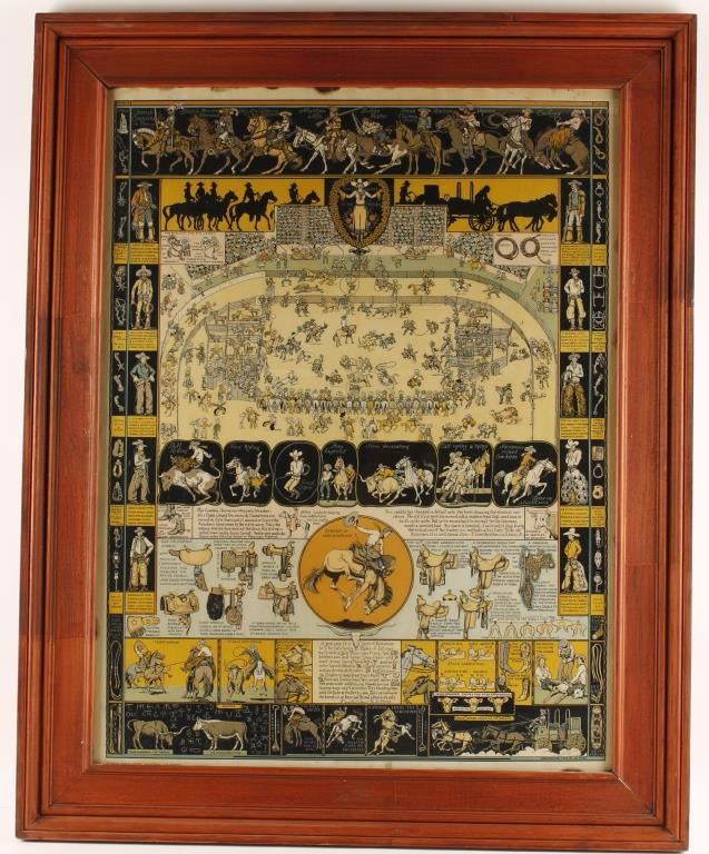 by noted Western artist Jo Mora entitled "Sweethearts of the Rodeo". Marked 'Jo Mora Publications Monterey, CA'. Nicely framed measures 31 1/2"x 24".