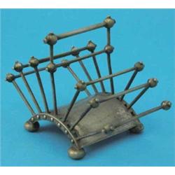 A Hukin & Heath silver plated toast rack, designed by Christopher Dresser, on ball toes, PODR 1881, 6.25ins £100-150