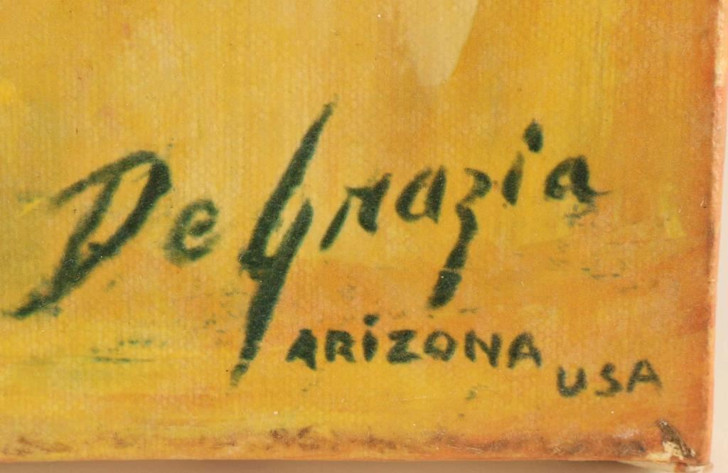 "My First Horse" signed lower right. Image measures 15 7/8" x 11 7/8". Canvas only, no frame. Small area of wear on lower right edge.
