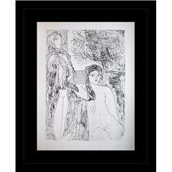 Pablo Picasso "Two Nudes And Portrait Of Rembrandt" - First Edition Lithograph After The Suite Vollard Etching - Printed In 1956 - Publis...