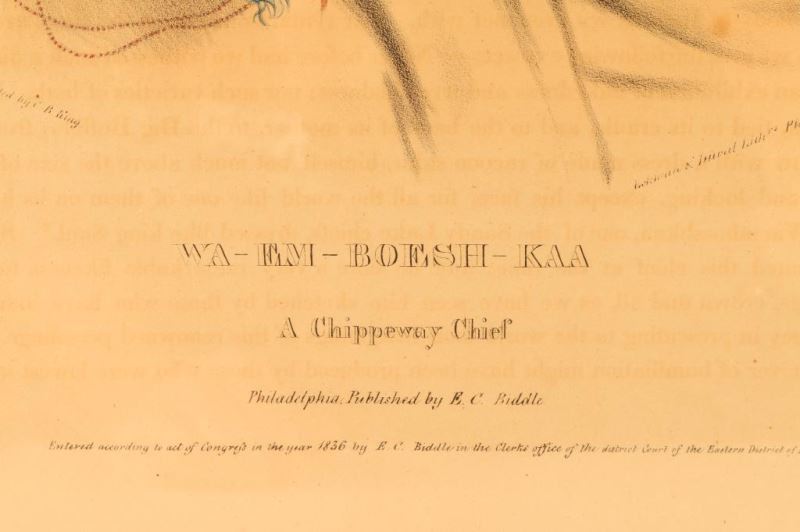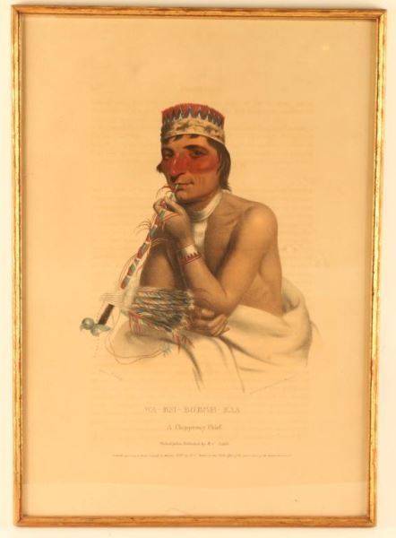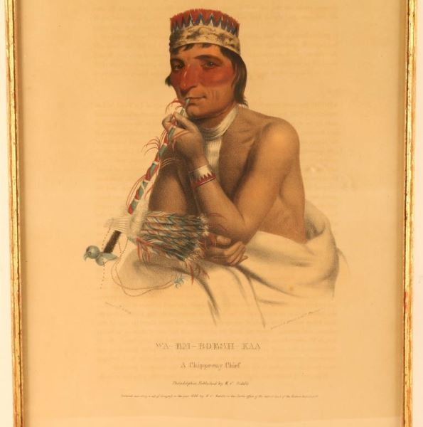 Wa-em-boesh-kaa, aA Chippewa Chief 19"x13" in gold frame. Act of Congress 1836, beautifully hand colored.