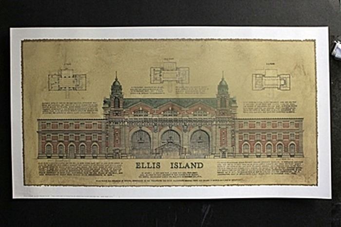 Authentic Fine Art Print "Ellis Island" by Roger Vilar, Size Approx. 14 x 26 In.