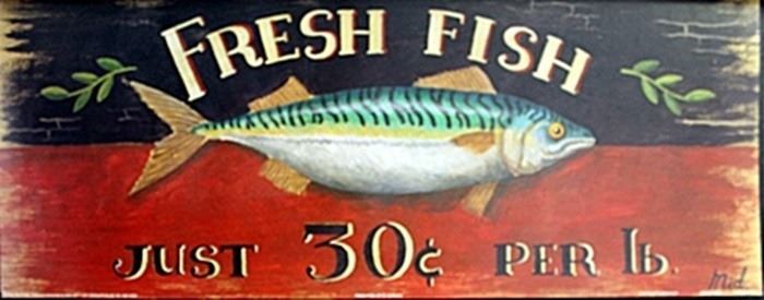 Authentic Fine Art Print "Fresh Fish" by M. Gordon, Size Approx. 8 x 20 In.