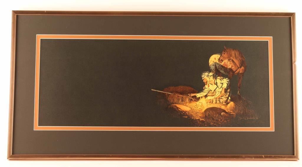 "Unknown Presence" signature lower right. Image measures 10 1/2" x 27 3/4" in double mat with metal frame. Includes information card on the artist and print folio #567 from Greenwich Workshop.