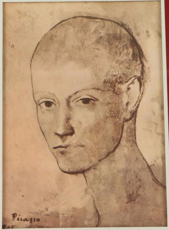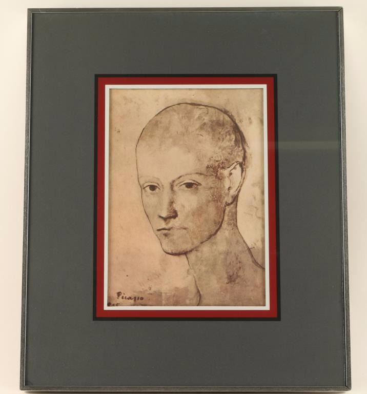 by Pablo Picasso "Head of Boy" in triple mat and frame. Image measures 12"x8".