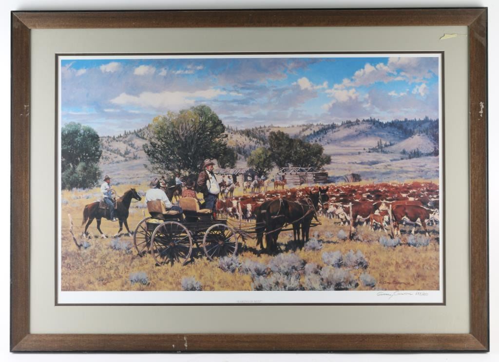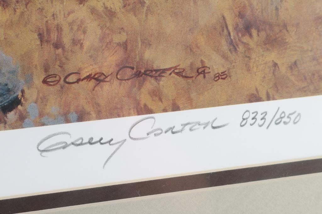 By "Gary Carter" signed and numbered lower right (833/850) framed in wood frame with matte paper border measuring picture size ( 32x21) in good condition.