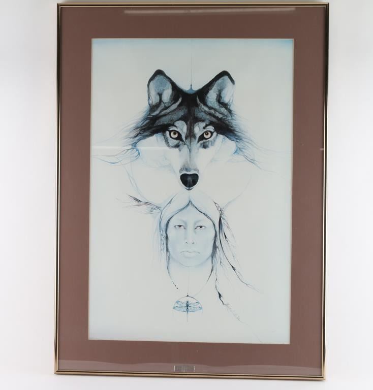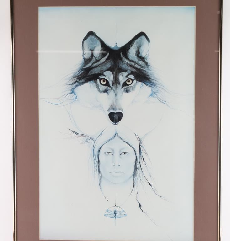By "Marie Buchfink" entitled "We are all one Family" framed an matted. Image size measures 27x18.