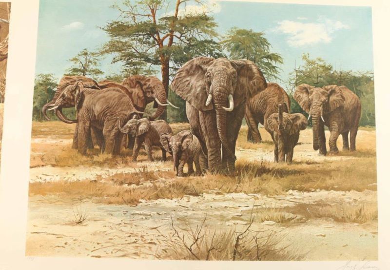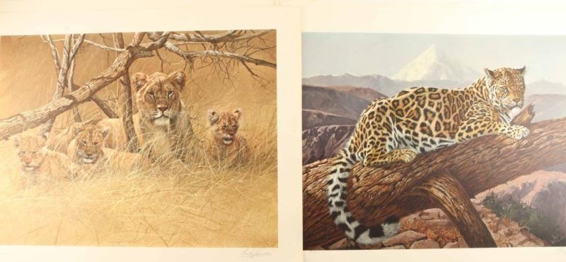 Noted Wildlife artist Gary Swanson produced a series of pictures listed as "The Official World Wildlife Portfolio of Big Game Art"distributed by the Franklin Mint Gallery of Art. All 10 pieces are hand signed & dated 1975 by artist. on the right lower corner. The portfolio holder shows the embossed Franklin Mint logo. Each print measures 24x18.