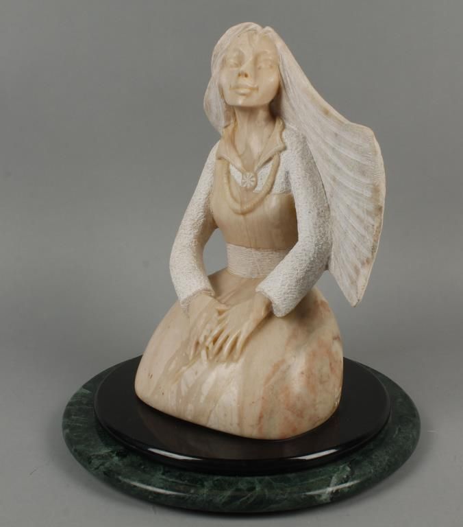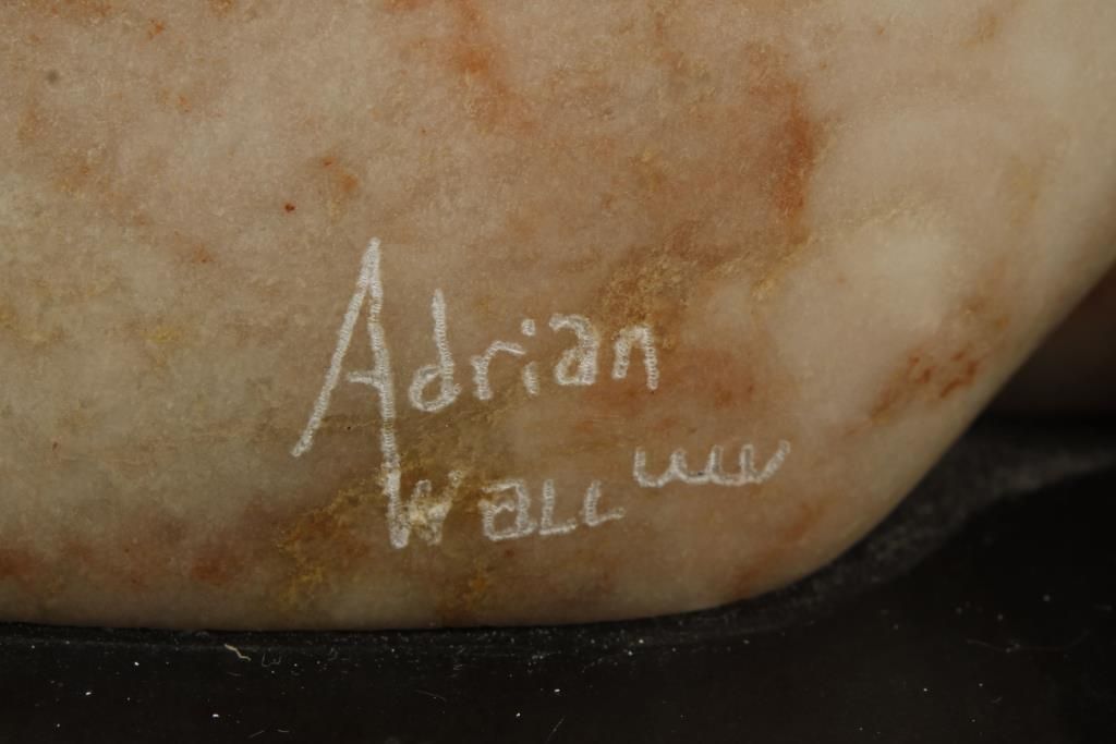By New Mexico artist Adrian Wall,depicting Native American Woman, hand carved in stone, signed on base. 14"X 9".