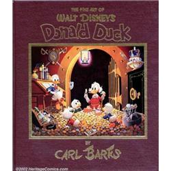 Fine Art of Walt Disney's Donald Duck, The (Another Rainbow Publishing, Inc., 1981). Fans of Carl Barks will adore this hardcover edition featuring glossy prints and fold-outs of the work of "the good Duck artist." Autographed by Barks himself, and limited to 1,875 copies, this deluxe McDuck Edition is number 96. The book is in NM condition and appears to be unread, while the slipcover has one flaw: a tiny, narrow area of color loss due to a scratch 1/2" scratch on the back cover. No Barks collection is truly complete without this entertaining, comprehensive reference book. Important notice: We expect to be auctioning lots at the rate of 200-250 per hour. Sometimes eBay Premier live bid software cannot keep up with that pace, so we strongly recommend that you place a realistic proxy bid now as insurance to avoid disappointment. Also please note that all Heritage/CAA lots purchased through eBay Premier carry a 20% Buyer's Premium.