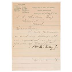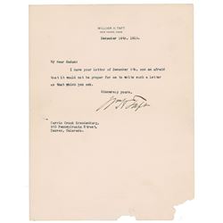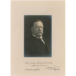 Ink signature, "Wm. H. Taft," on an off-white 3.25 x 1 slip clipped from a larger card. Mounted, matted, and framed with an artistic depic...
