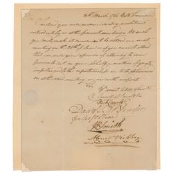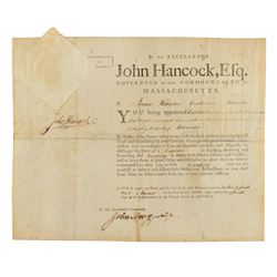 Partly-printed DS, one page, 15.75 x 12.75, August 24, 1790. As governor of Massachusetts, Hancock appoints Isaac Hunter as "Captain of a Compa...