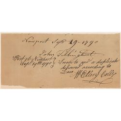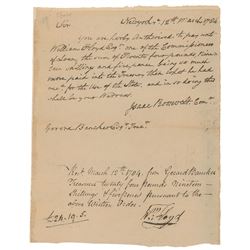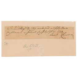 Revolutionary War–dated ADS, one page, 7.5 x 2.5, May 4, 1779. Handwritten receipt of payment, in full: "1779, Rec'd 4th May of Dr. J...